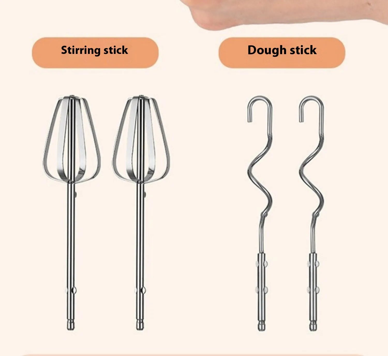 Stainless Steel Beaters: Durable, rust-resistant attachments for long-term use.